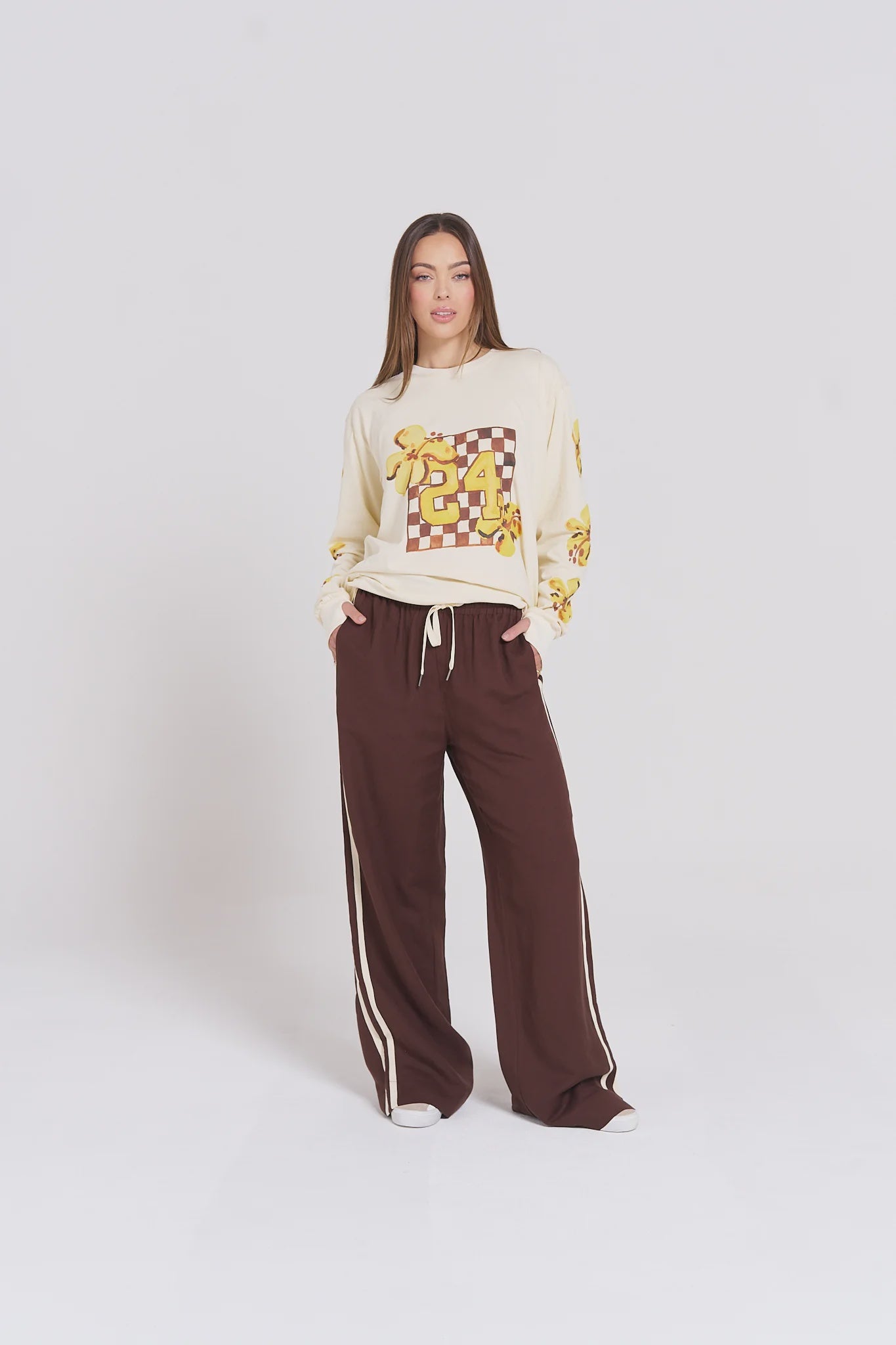 The pants you'll never want to take off – our Everyday Linen Track Pants nail that perfect balance between comfy and put-together. The high-waisted design gives you options – wear them up for a leg-lengthening look or roll them down for a more relaxed vibe. The subtle flare at the bottom adds that little touch of style that takes these from basic to "where did you get those?"